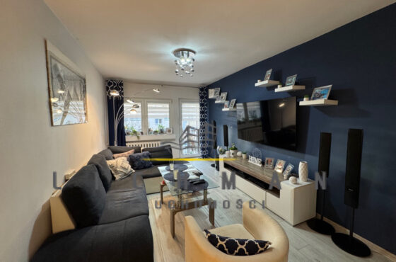NUMER OFERTY W BIURZE: SM/AW429/2012Mamy do zaoferowania mieszkanie o wysokim standardzie składające się z 4 pokoi, aneksu kuchennego, 2 łazienek z WC. Mieszkanie na osiedlu strzeżonym, monitorowanym, jest ono szczytowe dwupoziomowe w apartament