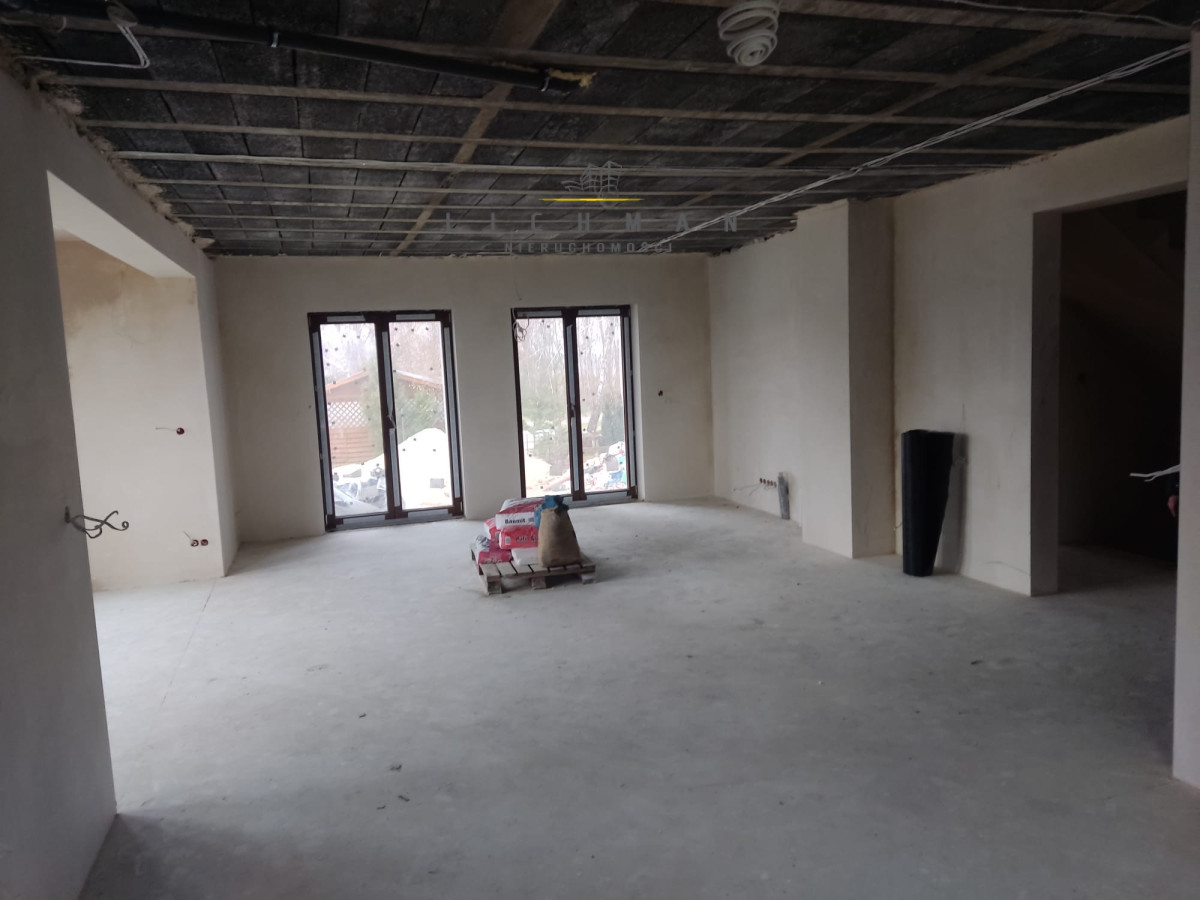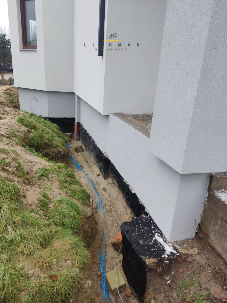 1) Jeden z domów został przygotowany w stanie surowym zamkniętym, co umożliwia aranżację wnętrza według własnych preferencji oraz indywidualny dobór materiałów wykończeniowych. Rozprowadzone zostały również instalacje oraz zostało rozprowadzone ogrzewanie, do zamontowania została pompa ciepła i szambo. Dach częściowo pokryty blachą i częściowo papą (dach do docieplenia)