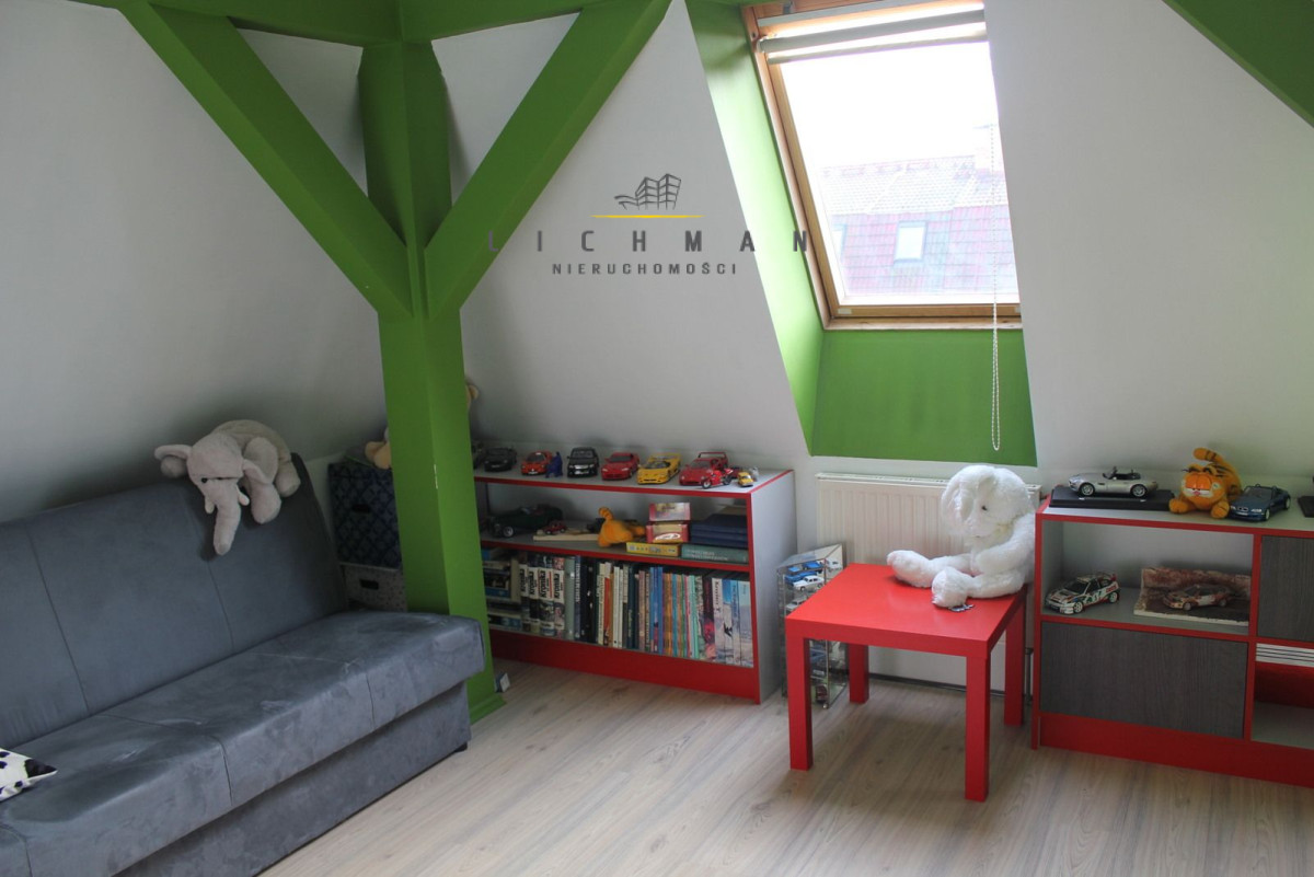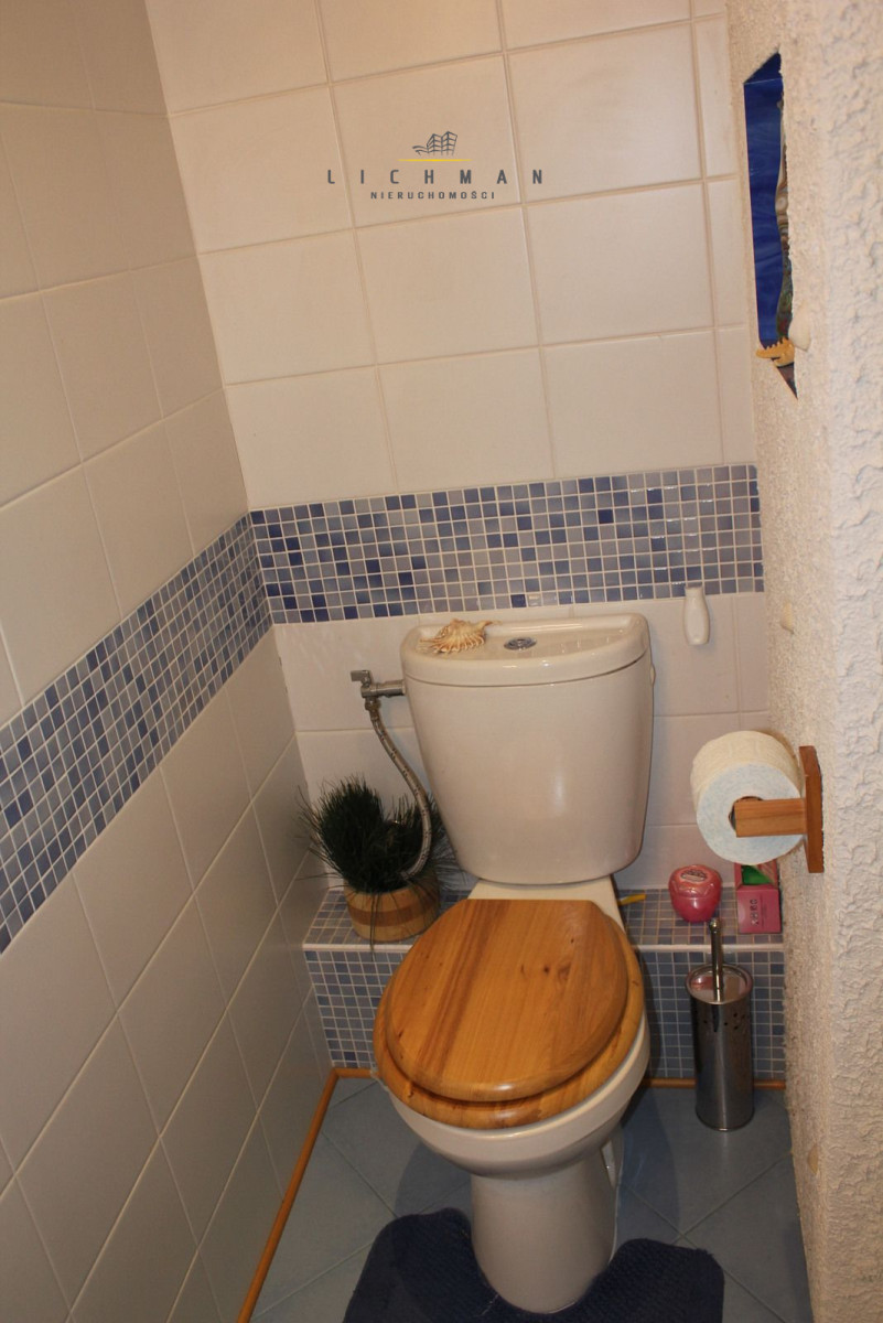 – I POZIOM: salon ( ok 27 m2, panele na podłodze, gładzie na ścianach), aneks kuchenny z jadalnią (ok.16 m2, panele na podłodze, gładzie na ścianach, meble, piekarnik, lodówka), łazienka z wc (9m2 , glazura, terakota, wanna, stan bardzo dobry).