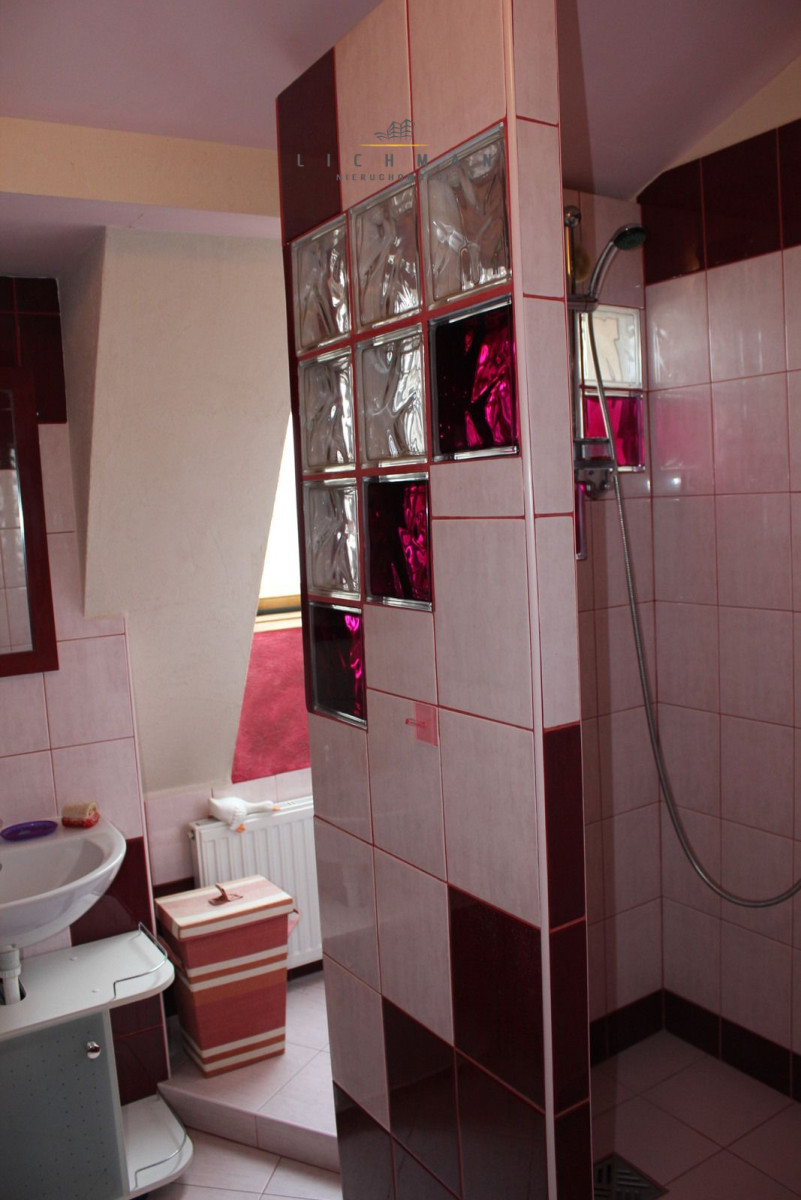 – II POZIOM: 2 sypialnie (każda ok. 25m2, panele na podłodze, gładzie na ścianach), łazienka z wc ( glazura, terakota, natrysk, stan bardzo dobry), przedpokój ( panele na podłodze, gładzie na ścianach).
