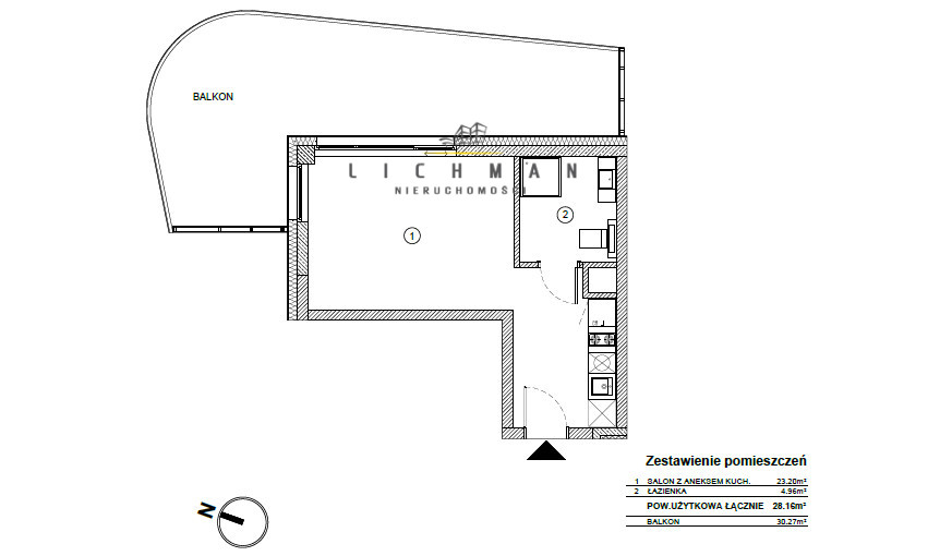 Lokal o powierzchni 28,16 m², położony na 2. piętrze budynku, narożny apartament typu studio z przemyślanym układem: salon z aneksem kuchennym, łazienka, przestronny taras o powierzchni aż 30,27 m², idealny do wypoczynku na świeżym powietrzu.